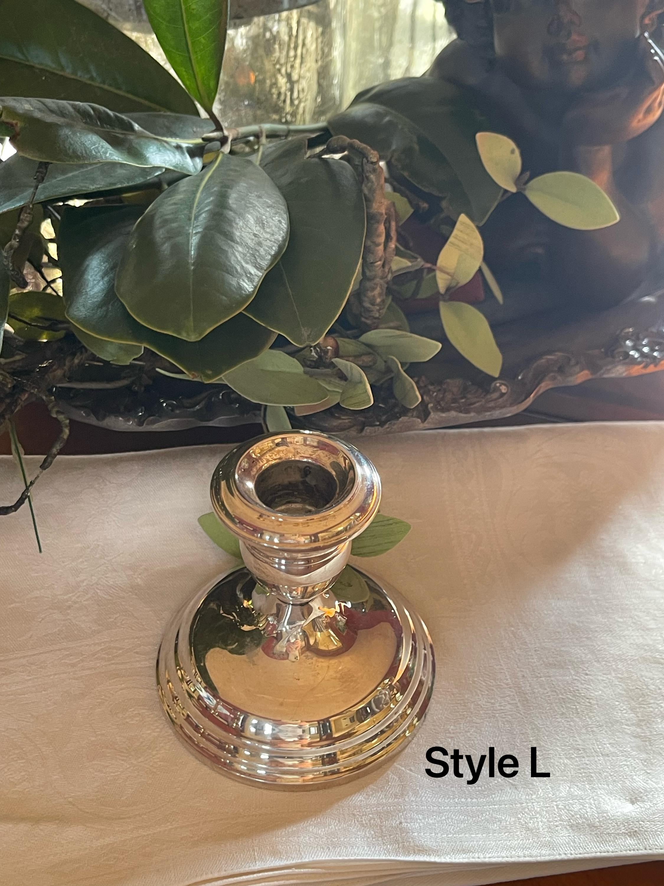Sold: Style H: (convex slopes to base) PLEASE NOTE: These are the only candlesticks that are silver plated. Gorham silver plate is renowned for its quality...I love the heft of these.