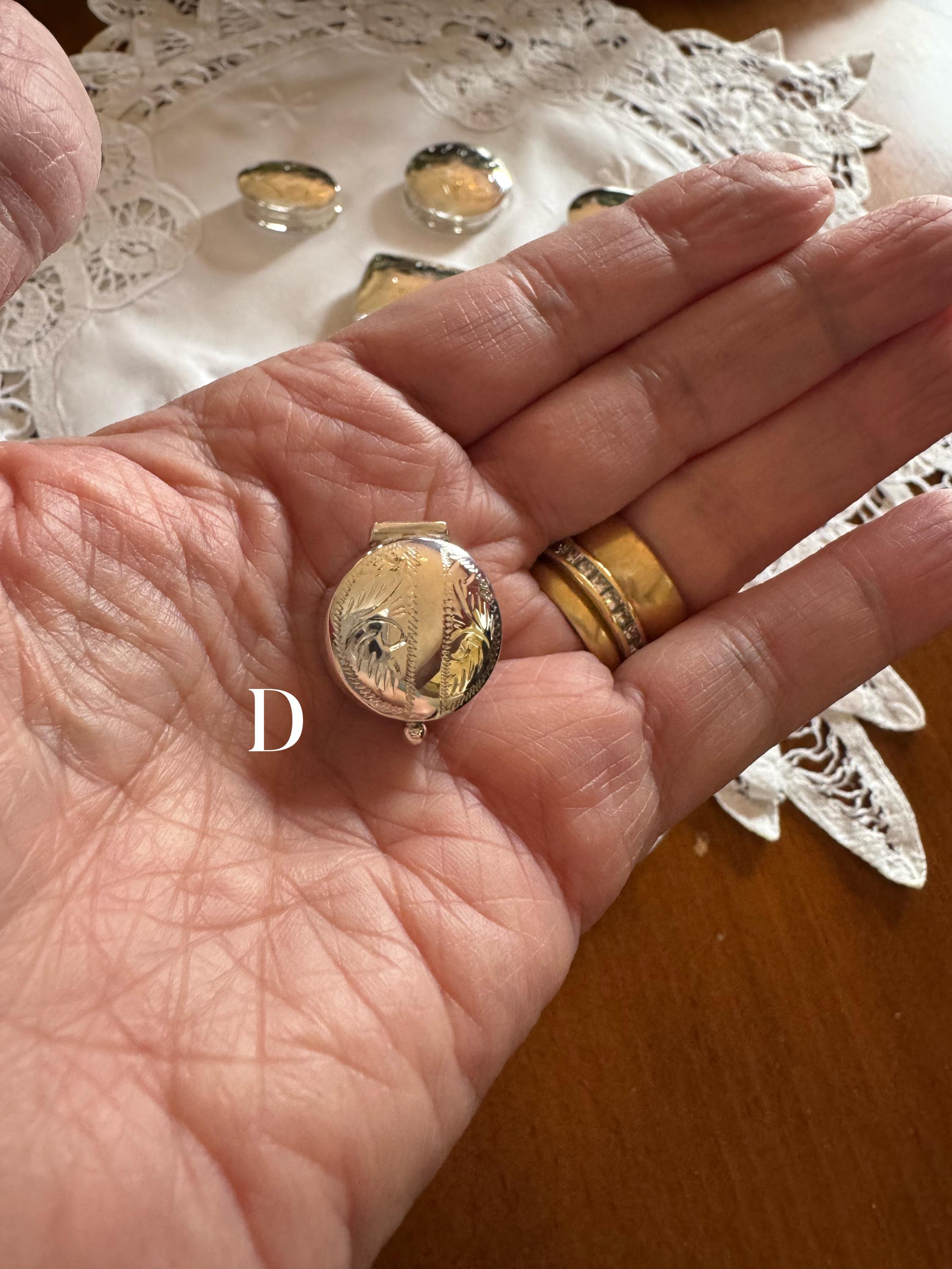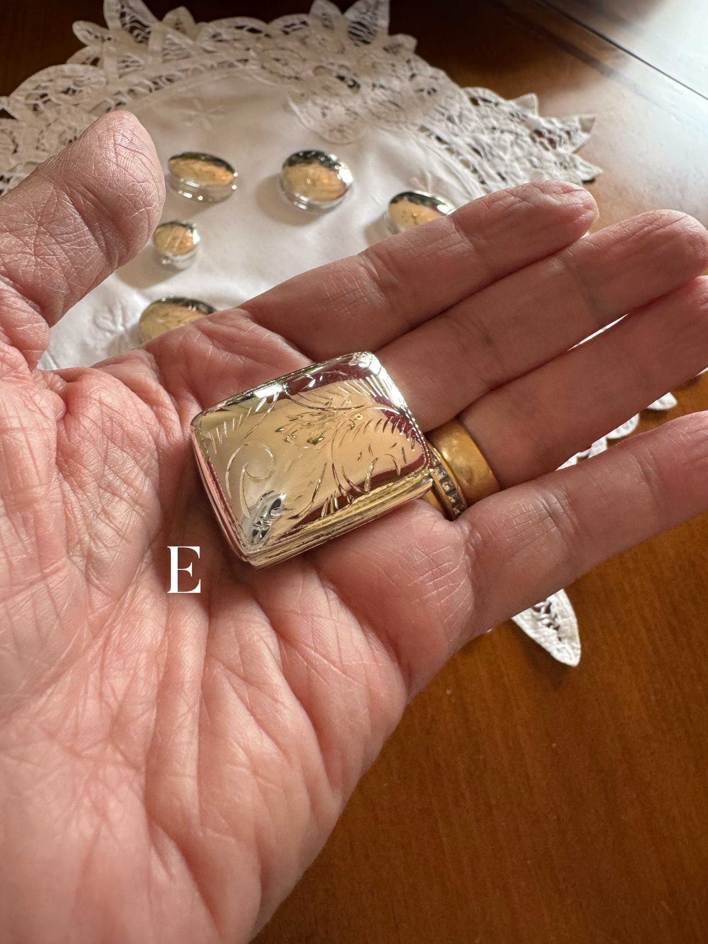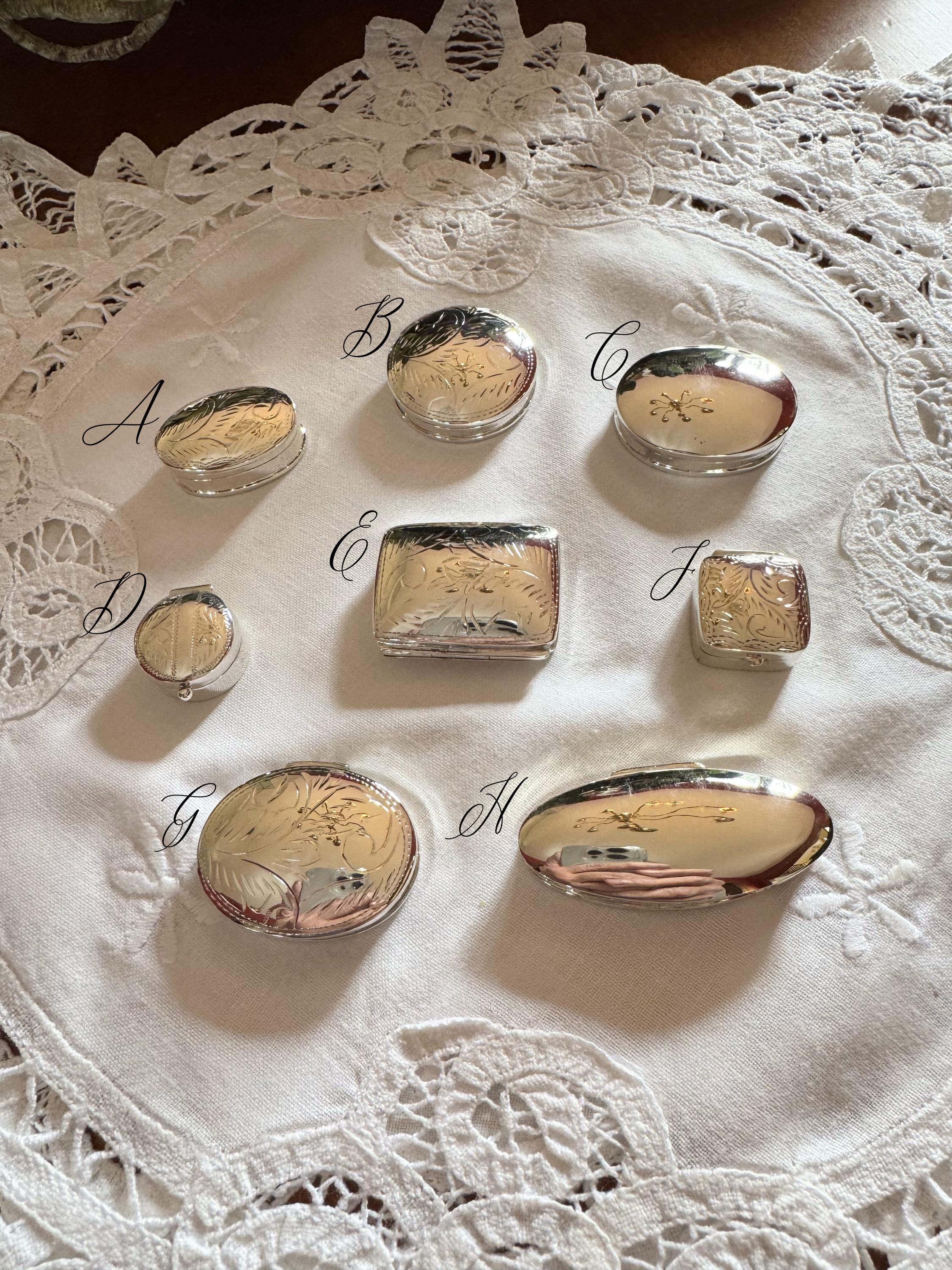 Absolutely gorgeous little silver pill box and I appreciated the extra care taken with the information and packaging! Thank you! I'm a vintage fiend and can't wait to use this as a replacement for my boring old plastic case. Let's just say that if you have to take Beano every day with lunch... you might as well do it in style ;)